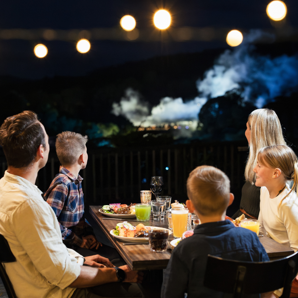 Finally, savour a delicious hāngī buffet dinner at our Pātaka Kai Restaurant & Bar, which overlooks a geothermal wonderland. Enjoy freshly sourced produce, traditionally cooked meats and vegetables, kai moana (seafood), and a selection of sweet desserts.